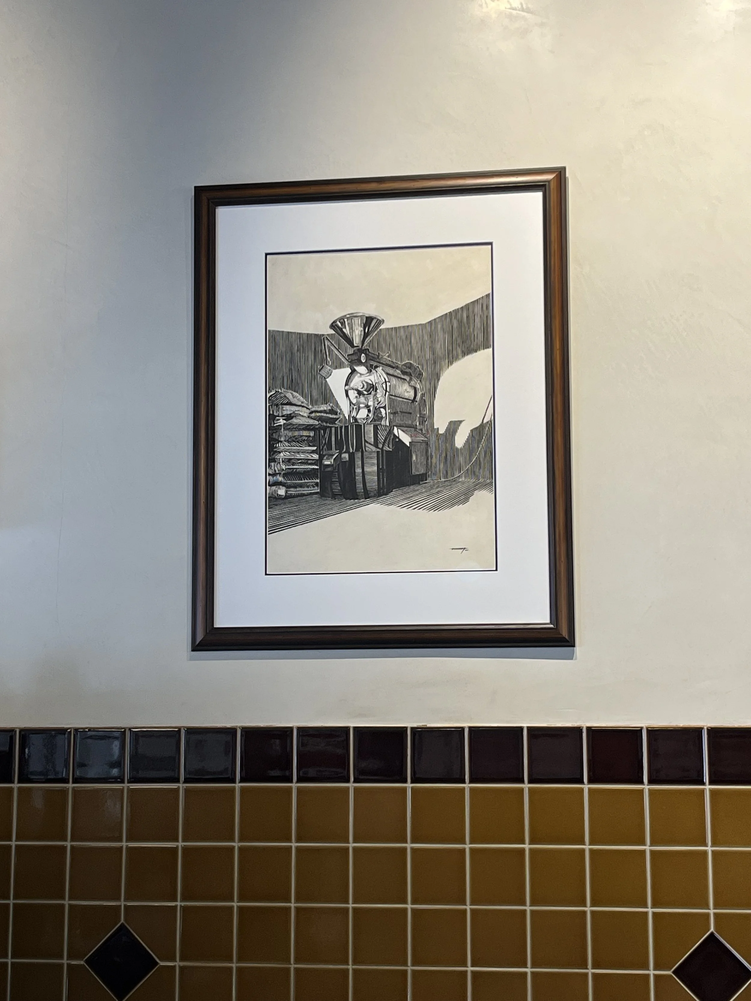 A commissioned artwork for Willow Bend Coffee Roasters in Croydon - this piece features their very own Toper Coffee Roaster, on site and roasting.